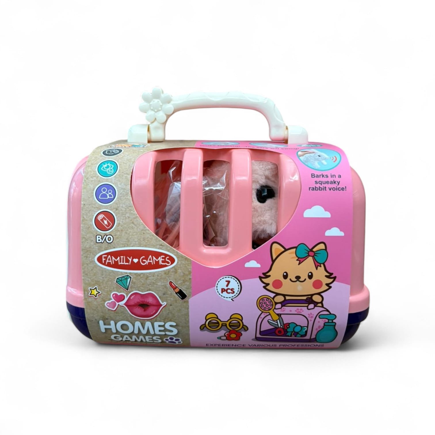 Este set ha sido diseñado con materiales resistentes y seguros para garantizar horas de juego sin preocupaciones. La transportadora presenta detalles que recrean perfectamente su función, ayudando a los pequeños a aprender conceptos como el transporte y cuidado de mascotas. Los accesorios, como el collar, plato de comida y juguetes, complementan la experiencia y añaden un toque de realismo que encantará a los más pequeños.